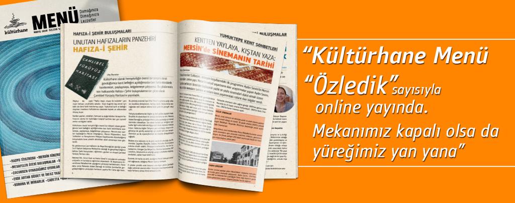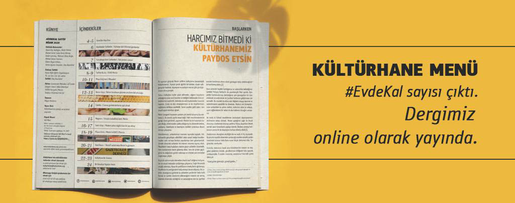 Menü/dergimizin 'Özledik' sayısı çıktı. Kültürhane, Covid-19 tedbirleri kapsamında halen kapalı olduğu için dijital ortamda yayımladığımız dergimizin tamamını buradan okuyabilirsiniz.